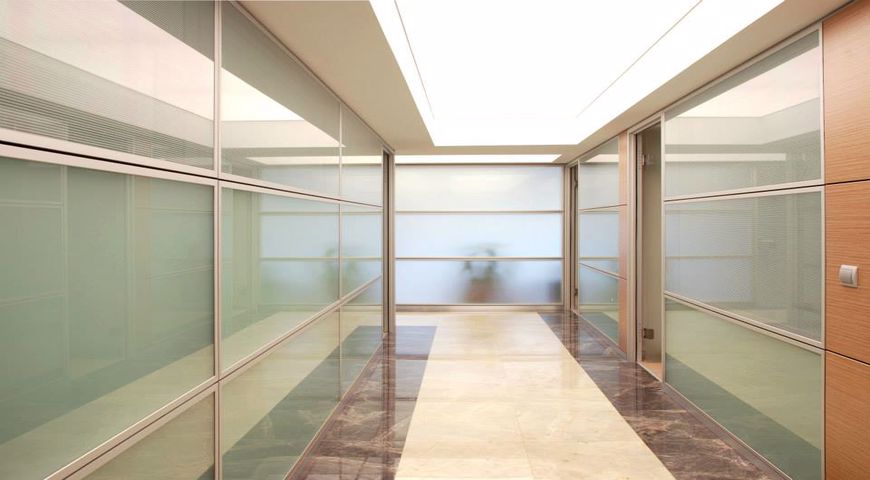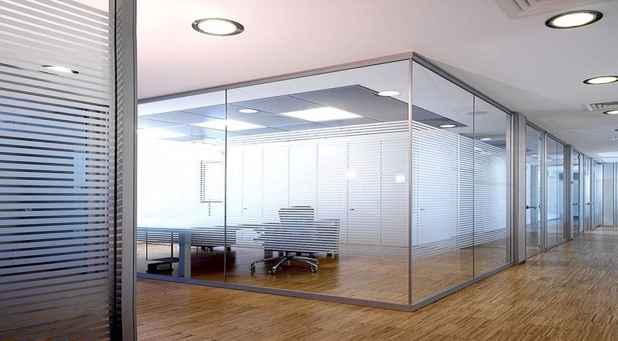 Ofislerin çeşitli kısımlara ayrılması için duvarın yarısına kadar cam bölmeler yapılmaktadır. Bir diğer ofis bölme sistemi ise çift cam kullanılarak duvarın tamamı kullanılarak yapılan bölmelerdir.